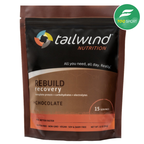 Bột hòa tan Tailwind Rebuild Recovery Chocolate giúp bạn hồi phục cơ bắp, năng lượng, bù khoáng, cân bằng điện giải sau tập luyện, thi đấu thể thao.